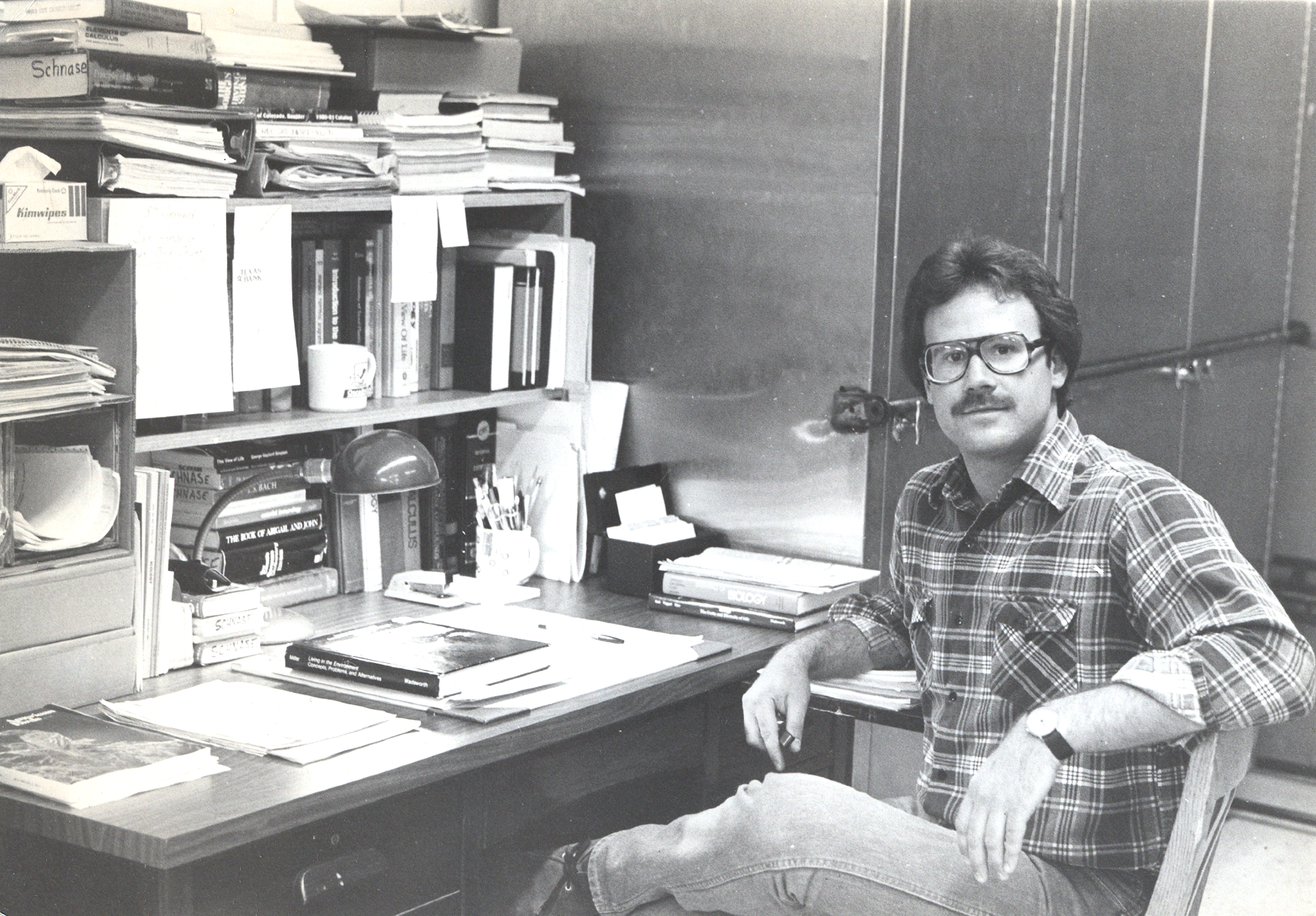 John Schnase in his office at San Angelo University in the 1980s, where he conducted a formal study of the Cassin’s Sparrow’s breeding biology and energetic ecology as a graduate student. NASA photo.