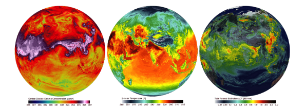Beyond weather, this is the first ultra-high-resolution global simulation to include interactive aerosols and carbon. In often-mesmerizing visualizations, "fine aerosol particles stream from industrial plants and fires around the globe, and waves of carbon dioxide drift from their sources and engulf the world,” Putman said.